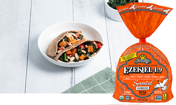 Different from most pocket breads today, Ezekiel 4:9® Pita Breads are made from freshly sprouted Live grains and contain absolutely no flour. Our exclusive sprouting process releases important enzymes which maximize nutritional content and promote better digestion. Beneficial enzymes are released to help breakdown starches, carbs and proteins like phytic acid to promote better nutrient assimilation. We believe this is an important aspect in promoting overall health, vitality and longevity-to get the most out of whole grains! And even better still, our exclusive process preserves these valuable nutrients and retains the important natural fiber + bran. See the difference fresh sprouts really make. Your body and tastebuds will know the difference!
