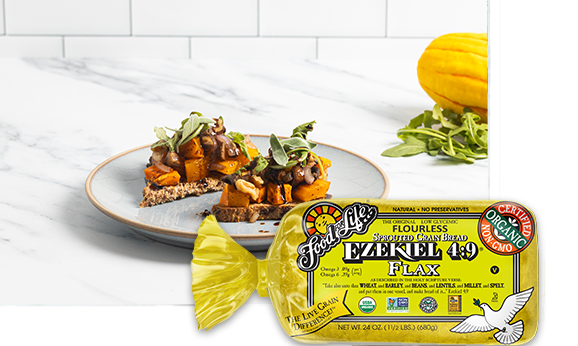 - 4 slices of Ezekiel 4:9 Flax Sprouted Whole Grain Bread, toasted.